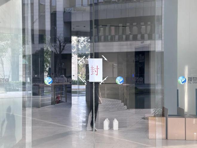 2月9日下午,每经记者来到璎黎药业所在的上海漕河泾康桥商务绿洲,璎黎药业在此拥有一栋独立的四层办公楼。在公司大门处,记者绕行一周后发现,一楼玻璃门以及侧边木门的缝隙处,均被交叉贴上了白色封条。