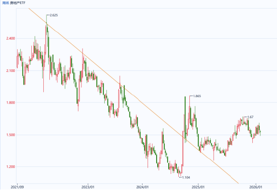因此对应到最近的市场表现来看,房地产板块近期呈现出一定的韧性。尽管未能成为领涨主力,但其周线级别已悄然脱离延续四年的下跌趋势线,整体走势相对稳健。特别是在1月宽基ETF出现显著资金净流出的背景下,以房地产为代表的ETF反而获得资金注入,且今日盘中再一次展现出相当的抗跌性,跌幅小于大盘......随着市场逻辑的转变,资金观察地产的视角可能也将发生改变。