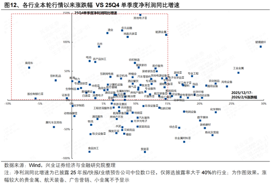 进一步拆解近期全球风险资产的涨跌结构,呈现出显著的“高切低”特征,这意味着近期全球风险资产共振调整的本质仍在于部分资金借利空事件获利了结,消化前期浮盈。我们统计了全球主要股指和商品今年以来的涨跌幅后发现,1月30日以来的累计调整幅度和年初以来的涨跌幅高度负相关,A股在行业结构上也呈现明显的“高切低”特征。这意味着近期全球风险资产的调整,表面上看是来自沃什被提名为联储主席、以及美股科技巨头新动态引发的全球货币政策和AI产业的不确定性,但本质上还是在此前过度乐观和拥挤的交易背景下,部分资金选择放大这些叙事,趁利空事件获利了结,从而推动全球资产和内部风格进行了一轮“再平衡”。