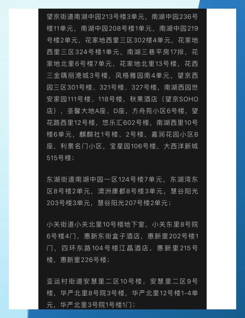 近来,部分区域在北京朝阳区,被划定成了中风险地区。具体来讲,朝阳区的其中两个社区有着不同情况,平房乡姚家园东社区,还有平房乡姚家园西社区,因为近14天各自累计报告了3例本土确诊病例而做出了相应变化,它们已从低风险地区升级成为中风险地区。截至相关的那个时间节点,北京市总共是有3个中风险地区的,并且这3个中风险地区全都位于朝阳区。对于朝阳区其他那些没有被明确提及受到影响的区域,要是没有出现新增病例,或者没有达到中风险的认定标准,那就依旧维持原来的风险等级。